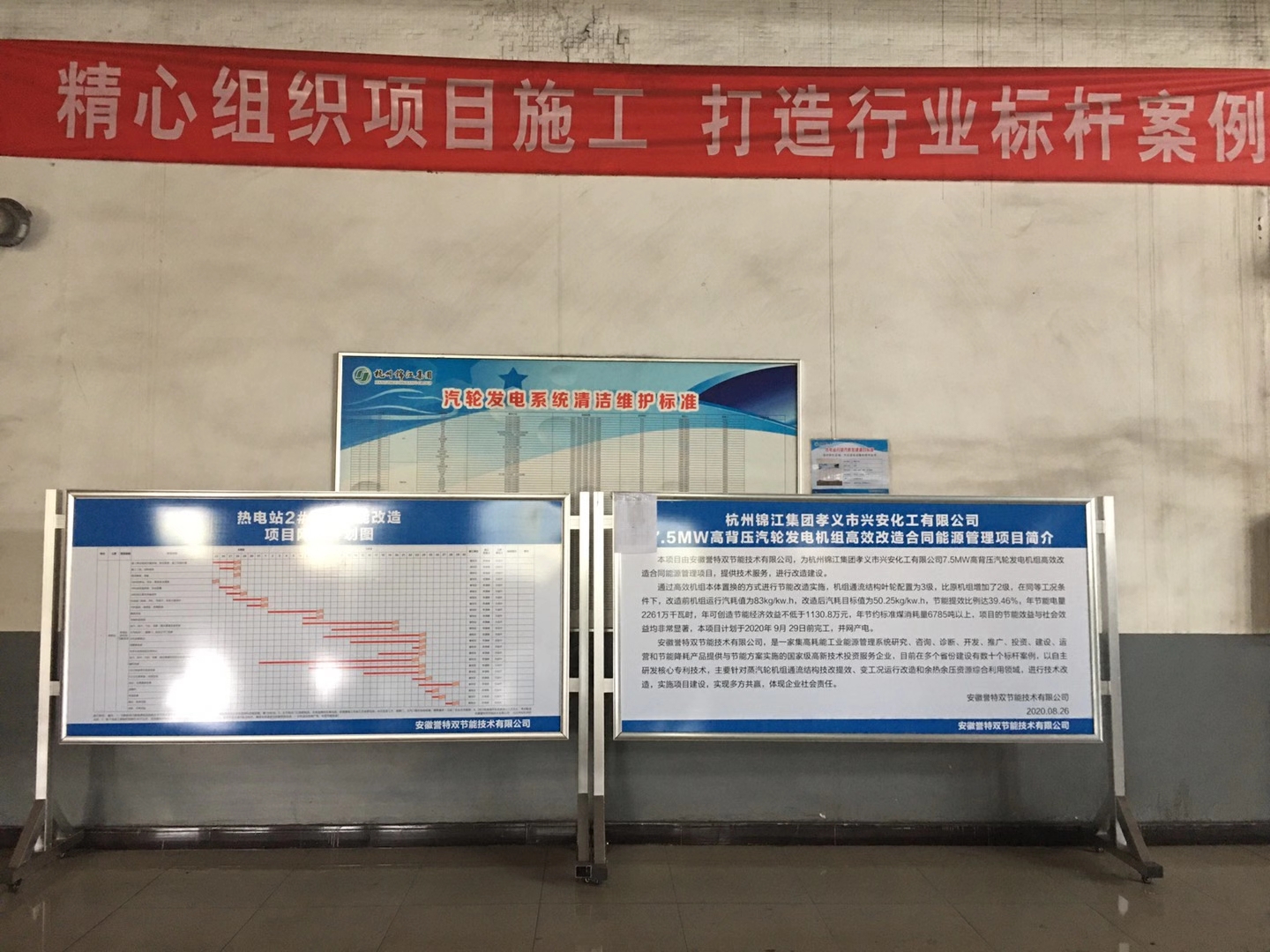 2020年10月19日上午10時許,我公司以合同能源管理效益分享型商務(wù)模式,全額投資的世界五百強杭州錦江集團全資子公司——孝義市興安化工有限公司8MW高背壓式汽輪發(fā)電機組高效改造項目,機組型號:B8-9.2/6.7//535,項目正式進入工程驗收,對節(jié)能提效指標(biāo)進行精準(zhǔn)測試。