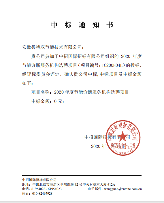 公司連續(xù)兩年中標(biāo)國(guó)家級(jí)節(jié)能診斷服務(wù)機(jī)構(gòu)選聘項(xiàng)目合格供應(yīng)商,代表著國(guó)家工業(yè)和信息化部對(duì)我公司服務(wù)能力、技術(shù)能力的肯定,為開拓全國(guó)工業(yè)節(jié)能診斷服務(wù)市場(chǎng)奠定基礎(chǔ),為國(guó)家節(jié)能減排事業(yè)貢獻(xiàn)力量,體現(xiàn)企業(yè)社會(huì)責(zé)任!