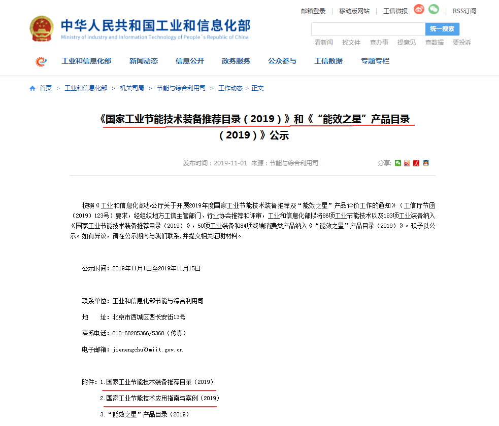 熱烈祝賀我司工業(yè)節(jié)能技術(shù)、案例入選 《國家工業(yè)節(jié)能技術(shù)裝備推薦目錄(2019)》