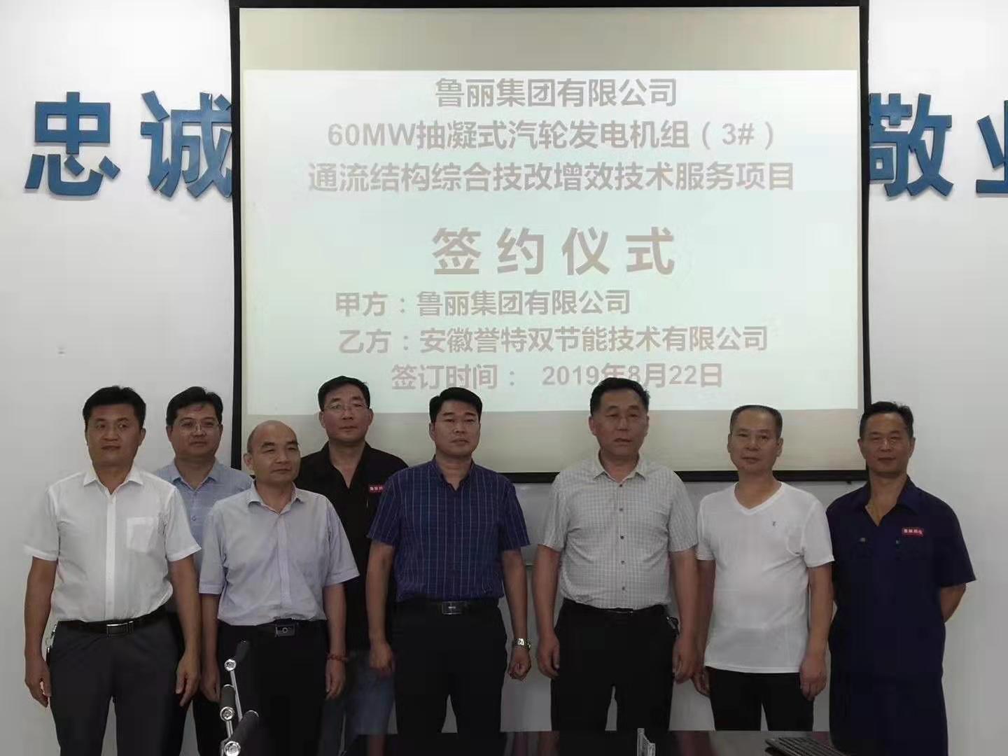 2019年8月下旬,經(jīng)長期跟進(jìn)和客戶信任,我安徽譽(yù)特雙節(jié)能技術(shù)有限公司,順利簽定中國民企五百強(qiáng)企業(yè)——魯麗集團(tuán)有限公司60MW雙抽凝式汽輪機(jī)組通流結(jié)構(gòu)綜合技改增效技術(shù)服務(wù)項目,合同額度逾千萬元,由我公司以技術(shù)服務(wù)的方式進(jìn)行技改增效實施。