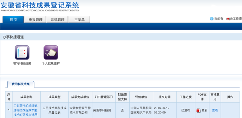 近日,我公司安徽譽特雙節(jié)能技術(shù)有限公司專利技術(shù)——工業(yè)蒸汽輪機通流結(jié)構(gòu)技改提效節(jié)能技術(shù)的研發(fā)與應(yīng)用,經(jīng)公司組織申報,市科技局審核、專家評委會審、安徽省科技廳復(fù)核批準,成果類別:應(yīng)用技術(shù)類科技成果,現(xiàn)予以發(fā)布。