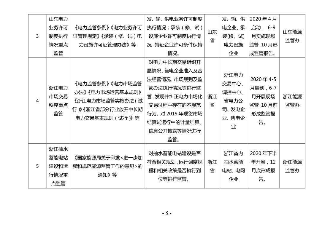 國家能源局關(guān)于印發(fā)《2020年能源監(jiān)管重點(diǎn)任務(wù)清單》的通知