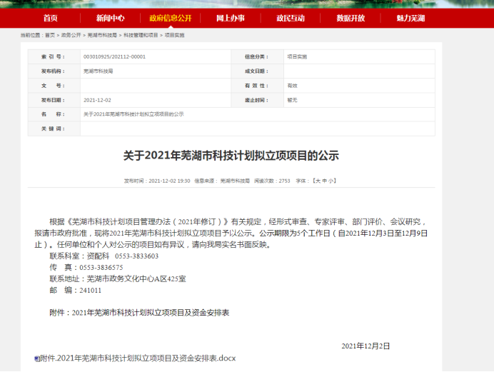 雙方首次合作申報2021年蕪湖市科技計劃擬立項項目——《雙碳”目標下傳統(tǒng)制造業(yè)節(jié)能減排路徑研究-創(chuàng)新環(huán)境研究》已在蕪湖市科技局網(wǎng)站公示。