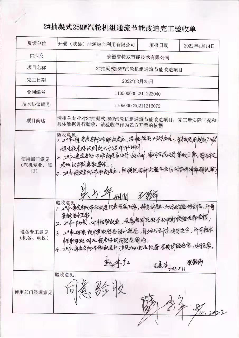 簡訊——三門峽開曼能源25MW機組2#節(jié)能改造提效項目順利通過驗收,節(jié)能提效比例遠超合同約定!