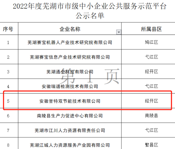 近日蕪湖市經濟和信息化局發(fā)布《2022年度蕪湖市市級中小企業(yè)公共服務示范平臺擬認定名單公示》,我公司再次被認定為2022年度蕪湖市中小企業(yè)公共服務示范平臺。本次全市共計評選出8家中小企業(yè)公共服務示范平臺,其中經開區(qū)2家,我公司榮列榜單。