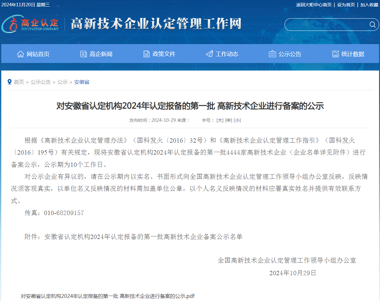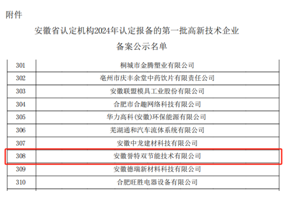 近期,全國高新技術(shù)企業(yè)認(rèn)定管理工作領(lǐng)導(dǎo)小組辦公室公布了安徽省2024年認(rèn)定報備的第一批高新技術(shù)企業(yè),我公司名列其中,在此表示祝賀!同時這也是公司連續(xù)第三次被認(rèn)定為國家高新技術(shù)企業(yè)。