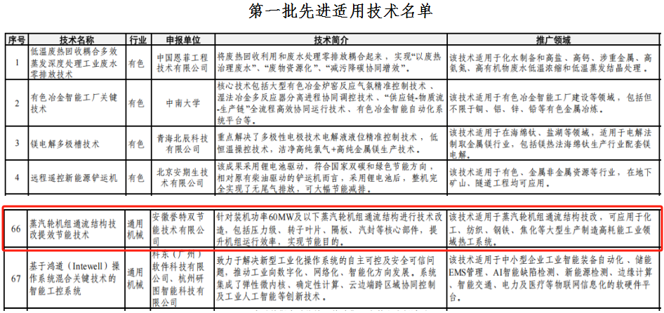 近日,工業(yè)和信息化部在全國范圍內(nèi)開展先進(jìn)適用技術(shù)(第一批)遴選工作,經(jīng)自主申報(bào)、形式審查、專家評(píng)審等程序,最終擇優(yōu)評(píng)選出111項(xiàng)技術(shù)列入工信部第一批先進(jìn)適用技術(shù)目錄,我公司“蒸汽輪機(jī)組通流結(jié)構(gòu)技改提效節(jié)能技術(shù)”榮列榜單,在此表示熱烈祝賀。